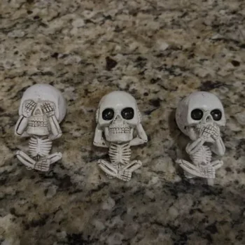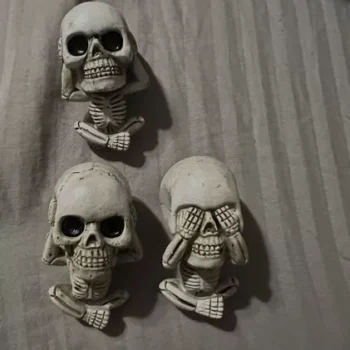 Our exclusive Skull Sculptures Set, featuring the ‘See Nothing, Say Nothing, Hear Nothing’ skulls, is a creative take on the classic proverb. This set, made of high-quality resin, offers a unique and artistic expression for skull enthusiasts and makes a striking addition to any space.