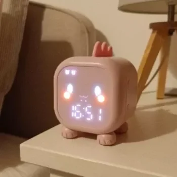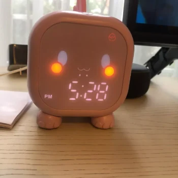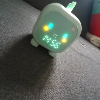 this alarm clock has been a great purchase. the dinosaur design is a hit with my child and the voice control feature makes it easy for them to use. the night light is soft and calming, perfect for helping them fall asleep. the alarm is simple to set and has a pleasant sound that wakes my child without startling them. it’s also very well-made and durable. mornings have become much smoother since we started using this clock. highly recommend to other parents looking for a fun and practical solution.