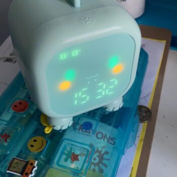 this clock is wonderful. the dinosaur design is cute and appealing to kids. the voice control is intuitive and works well. the night light provides a soothing glow that helps my child feel secure at night. the alarm is easy to set and wakes them up gently. it’s also built to last, with sturdy construction. it’s been a great addition to our routine, making mornings easier and nights more comfortable. highly recommend to any parent looking for a fun and functional alarm clock for their child.