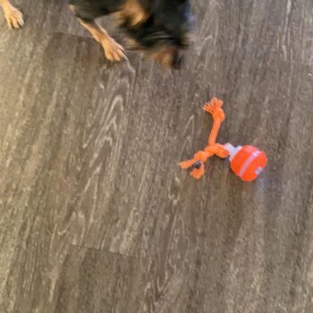 This rolling toy has become my dog's new favorite. It moves around the house freely, even on our wooden floors.