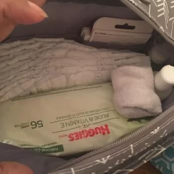 I'm totally in love with this compact yet surprisingly spacious diaper bag! It's been a game-changer for me, especially when I'm on the go and don't want the hassle of carrying a massive diaper bag around. Everything I need for a quick outing fits in perfectly. I've even managed to squeeze in some baby medicine and chest rub, plus a tiny first-aid kit in the side pocket, which is incredibly handy for unexpected bumps and bruises. There's still plenty of room for a hygiene bag and snacks, which is fantastic for longer days out when you need a bit more than the bare essentials. The design is so well thought out, with pockets and compartments that make organizing a breeze. I particularly love how there's a specific place for everything, yet it doesn't feel cramped or cluttered. The only thing I'm still figuring out is the best spot for the baby's cup, but I'm confident that with a little rearranging, everything will fit in seamlessly. Perhaps using some of the creative packing techniques mentioned in other reviews will do the trick. Moreover, the convenience of not having to lug around a bulky bag while still having quick access to diapers, wipes, and other necessities cannot be overstated. It's incredibly freeing to be able to focus more on enjoying my time out with my little one rather than worrying about where to stash a large diaper bag. The strap and stroller clips are a fantastic addition, making it even easier to carry or attach to the stroller, further enhancing its portability and practicality. This bag truly combines functionality with style, making it a must-have for any parent looking for an efficient, stylish solution for carrying their baby's essentials.
