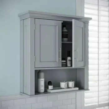 Elegant Gray 2-Door Bathroom Wall Cabinet with Open & Interior Shelves